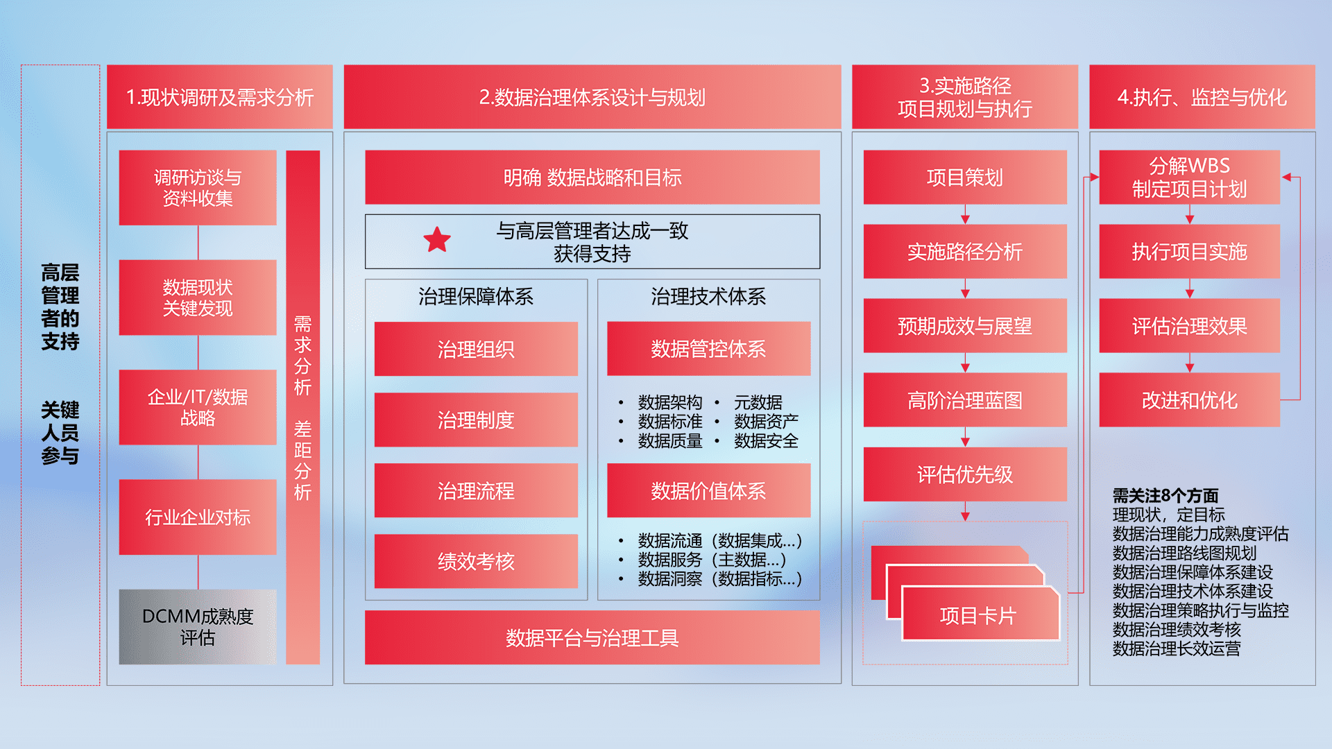 制定并执行统一的数据标准,,规范数据定义和格式,,,消除冗余和不一致性,,,,实现跨部门和跨系统的数据一致性,,,,为企业提供标准化的数据基础。。。